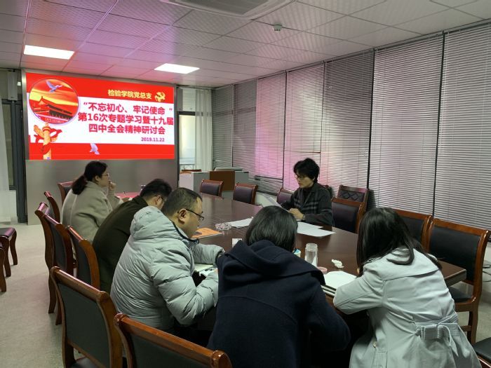 随后,围绕党的十九届四中全会精神,与会人员结合学院中心工作和自身实际积极开展交流研讨。崔晓霞谈到,如何永葆先进性纯洁性,永葆青春活力,永远得到人民群众的的拥护和支持,实现长期执政,是我们党必须回答和解决好的一个根本性问题。建立“不忘初心、牢记使命的制度”,就是要充分发挥制度的规范和引领作用,推动全党遵守党章,恪守党的性质和宗旨,使我们党永远得到人民拥护和支持。在今后的工作中,我们要继续严格落实好各项学习制度、坚持全面从严治党、继续抓好作风建设、加强师德师风建设和个人廉洁自律,牢记初心使命,为党旗增光添彩。其他总支委员结合各自工作从科研、德育、人文素养等方面展开交流讨论。