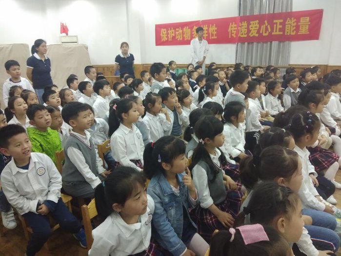 早上八点,志愿者和老师们一起迎接小朋友入园,伴随着活力满满的歌声,和小朋友们一起在草坪上欢快的做起了早操。随后的公开课,志愿者以图片和文字的形式,带领小朋友们走进多姿多彩的动物世界,认识动物、了解动物。通过播放保护动物宣传片,小朋友们认识和了解到当前世界濒危动物的现状,纷纷响应保护动物的倡议。