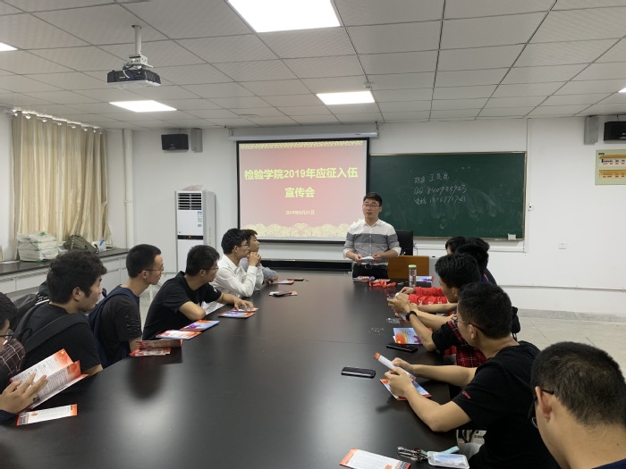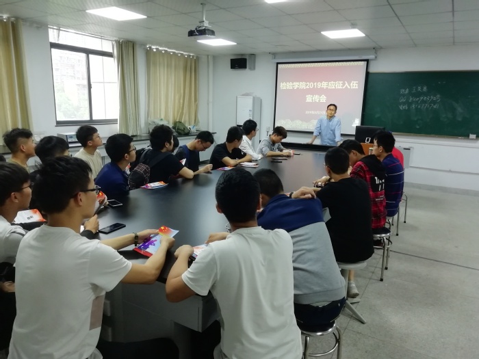 为加强征兵政策宣传,做好2019年大学生应征入伍工作,5月21日下午5点,yl6809永利官网于四号实验楼3017教室举行“2019征兵政策宣讲会”,会议由yl6809永利官网学生工作秘书邵峰主持,2018级辅导员曹玉祥,2016级医学检验技术专业退伍学生王炎康以及有意入伍的男同学参加了本次宣讲会。