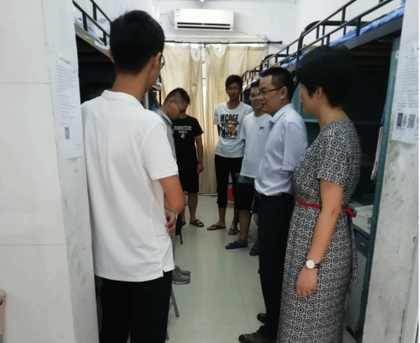 为进一步了解学院新生生活情况,帮助新生尽快适应新环境,加强新生宿舍管理,9月3日下午学院领导和新生辅导员曹玉祥走访了yl6809永利官网新生宿舍,亲切地与每一位新生交流。其间崔晓霞多次强调安全问题,让同学们谨防推销,时刻注意自身财务安全,遇到突发情况要及时向老师反映。文育锋要求同学们做好新学期的规划,及时适应大学的学习方式。并询问从新生入校以来对学校、对学院的感受,到生活习惯、饮食习惯的适应;从个人兴趣、个人特长的了解,到为院争光、为校争光的期望,无不凝聚着学院领导对所有新生的关心,也拉近了老师与学生间的距离,2018级新生对老师们的关心表示感谢。