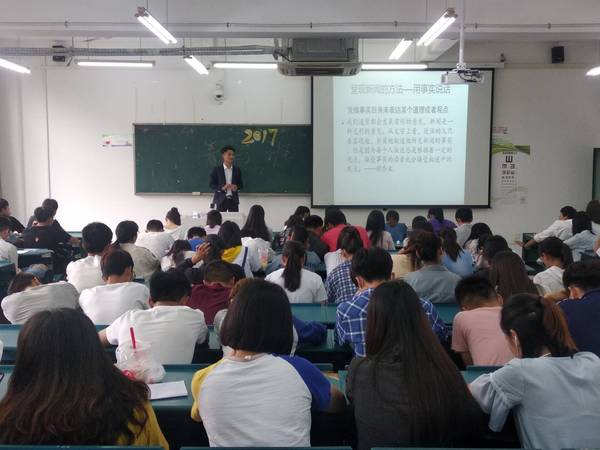 荆明开门见山地从新闻稿三要素——“时效性”、“简洁性”、“准确性”讲起。用简洁的语言,清晰地思路,向同学们传授了校园类新闻稿的写作特点与写作技巧,并加以实例分析,使得讲座更具吸引力。同时他着重强调新闻写作准确的重要性,并且指出,作为一名媒体人应当时刻谨记“真实”二字,宁坐板凳十年冷,文章不写半句空。