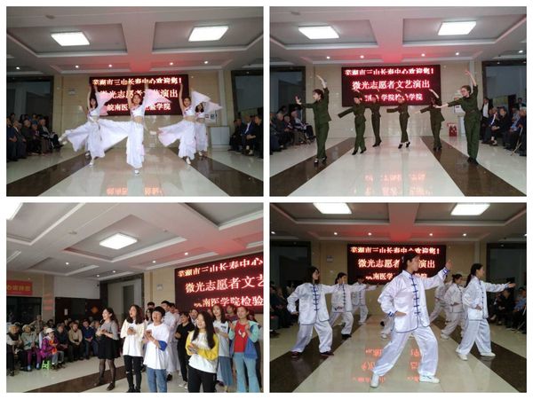 活动当天,淅淅沥沥的小雨丝毫没有影响大家的热情。在敬老院的大堂里,志愿者们为老人带来了精彩的文艺表演。舞蹈《芳华》的表演者们动作挥洒舒放,舞出了革命年代草原女民兵的特有风采,赢得了老人们的阵阵掌声。激情澎湃的独唱、优雅唯美的古典舞、整齐划一的太极拳,节目精彩纷呈,礼堂里不时传出老人们和志愿者们的笑声和喝彩。最后,演出在合唱《相亲相爱》中圆满落幕。