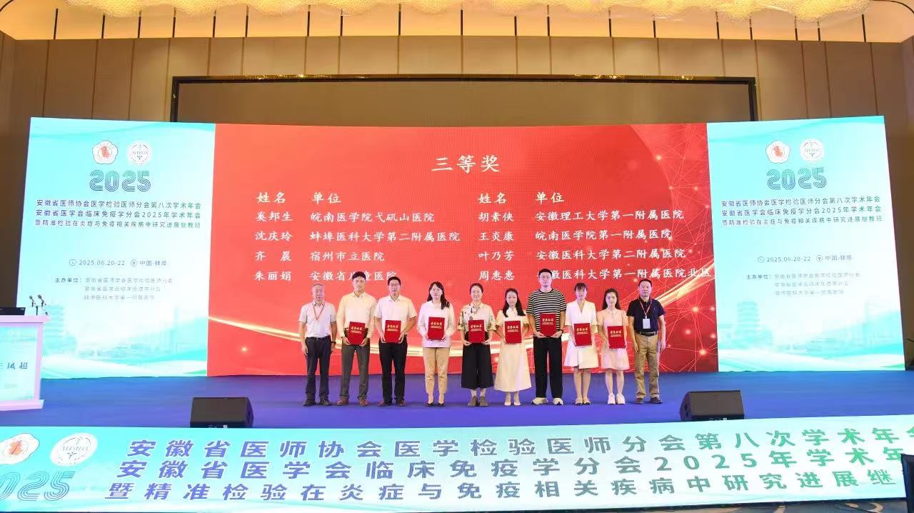 6月20日,由安徽省医师协会医学检验医师分会主办的第一届青年教师讲课比赛在蚌埠举行。本次大赛汇聚了全省各大医疗机构检验领域的青年精英26人,竞争异常激烈。来自yl6809永利官网yl6809永利官网第一和第二附属医院检验科的四位临床青年教师代表参赛,选手凭借扎实的专业功底、出色的教学设计与沉稳的现场发挥,从众多优秀选手中脱颖而出,一举囊括大赛一等奖、二等奖及三等奖,展现出yl6809永利官网临床教研室在青年人才培养和教学能力建设方面的显著成绩。