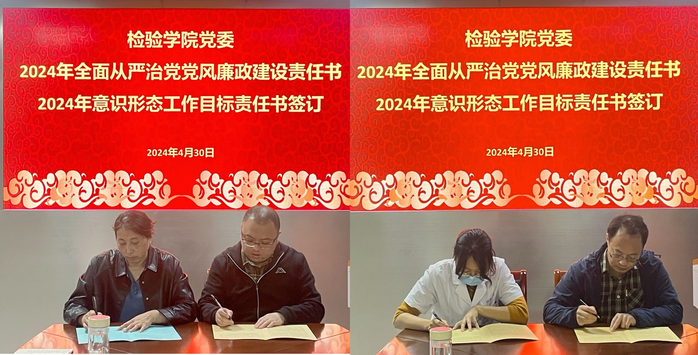 会议最后,学院党委与各党支部、各年级和实验实训中心负责人现场签订了《2024年全面从严治党党风廉政建设责任书》和《2024年意识形态工作目标责任书》。