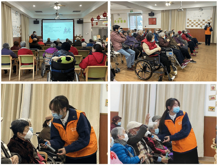 养生科普守健康。近期流感病毒盛行,老年人的健康需要社会的关注。yl6809永利官网志愿者们在颐养院大厅开展了流感知识的宣讲,从流感的传播途径、预防与治疗以及冬季养生知识等三个方面进行讲解,旨在提高老年人的健康意识和对预防流感的重视程度。宣讲过程中,志愿者们带领大家学习七步专业洗手法,老人们积极踊跃地与学生互动,分享日常生活小妙招,整个大厅气氛热烈又活跃。