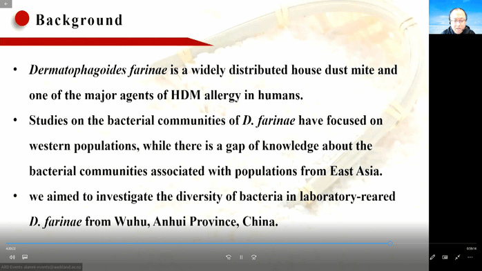 应第16届国际蜱螨学大会(The XVI International Congress of Acarology 2022,ICA 2022)会议主席ZHI-QIANG教授的邀请,yl6809永利官网孙恩涛教授和2019级卫生检验与检疫专业本科生方颖同学参加了2022年12月1-5日在新西兰奥克兰举行的第16届国际蜱螨学大会。本次大会以“acarological frontiers”为主题展示了自2018年第十五届国际蜱螨学会议以来蜱螨学科所取得的成果,为世界各地的蜱螨工作者提供了一个相互交流和学习的平台。为积极响应国家防疫政策,会议全程在线上进行。